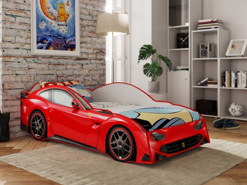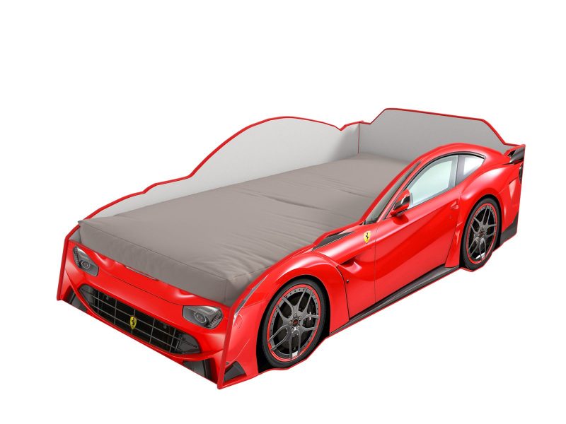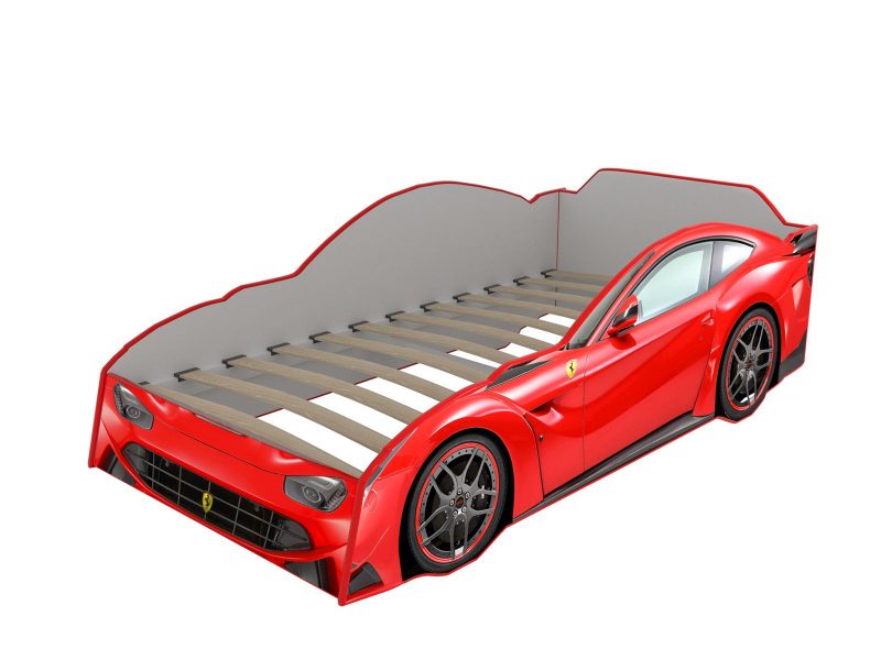 Кровать «Машинка Феррари» — не только красива, но и безопасна: скруглённые формы и защищённые мягким кантом грани оберегают малыша от ушибов при активных играх.