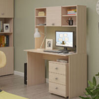 Конструкцией предусмотрена выкатная тумба с выдвижными ящиками, что позволяет увеличить полезную площадь стола. В глубоких ящиках поместятся все необходимые для учебы и творчества принадлежности.