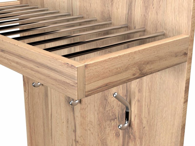 Настенная вешалка для одежды и головных уборов из ЛДСП — это идеальное решение для вашей прихожей. Настенная вешалка для одежды — это не просто функциональная мебель, но и стильный аксессуар. Настенная деревянная вешалка будет прекрасным дополнением в прихожую, коридор, гардероб или на дачу. Вешалка настенная с полкой имеет верхнюю навесную полку для размещения головных уборов, шарфов и перчаток. Если вы ищете способ максимально эффективно использовать пространство на стене и не занимать много места на полу, то наша вешалка для прихожей настенная — идеальный выбор.
