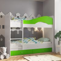 Кровать имеет плавные очертания элементов, что обезопасит ребенка от ушибов и травм. Удобные и безопасные спальные места выдержат критику со стороны самых беспокойных родителей. Наличие лестницы на второй ярус позволяет использовать ее в качестве детского тренажера и для игровой деятельности детей.