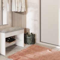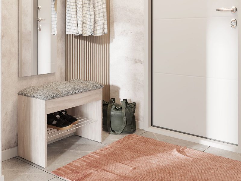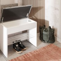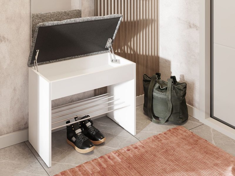 «Лина» — удобная, компактная модель с мягкой крышкой в обивке из серой рогожки подойдет даже для самой маленькой прихожей и впишется в любой интерьер. Конструктивно обувница имеет открытые полочки для хранения нескольких пар невысокой обуви и потайную, расположенную за откидной верхней крышкой нишу — для перчаток, зонтика, крема для обуви или других полезных мелочей, необходимых при выходе из квартиры.