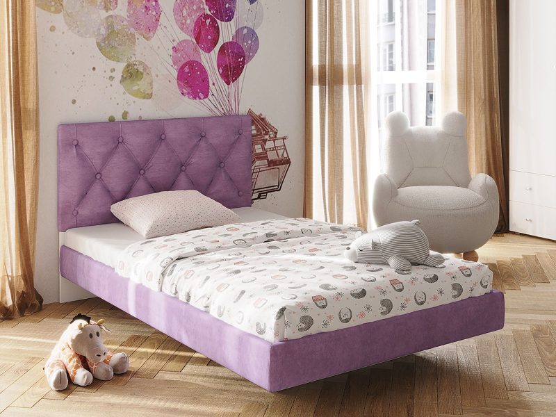 Кровать «Милана» создана для ярких и креативных подростков. Интересный дизайн и необходимый функционал порадует вас и вашего ребенка! Обивка спинки кровати — мягкий велюр с двумя видами каретной стяжки на выбор. А разнообразие вариантов цветовой палитры порадует даже самого привередливого подростка. Боковины кровати (царги) — мягкие, как и спинка, что предотвратит неприятные ушибы. «Милана» – это идеальное решение для детской и подростковой комнаты.
