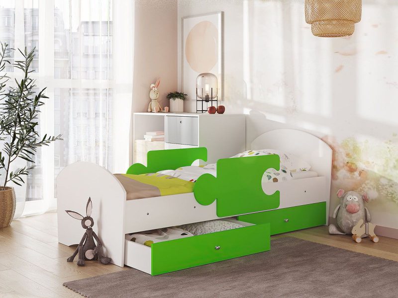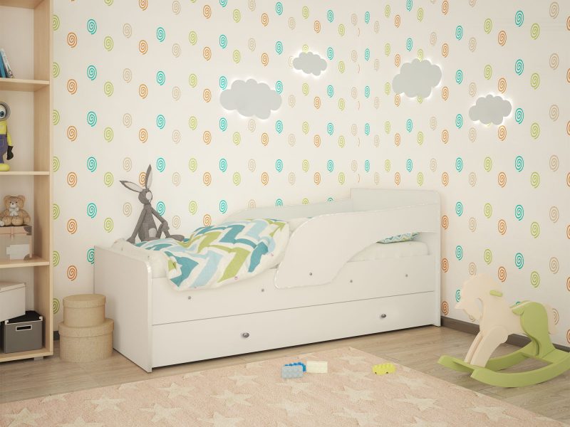 Кровать «Мозайка» — яркая, стильная кровать в детскую. Борта с двух сторон кровати обезопасят Вашего ребенка от падения (дополнительная опция).