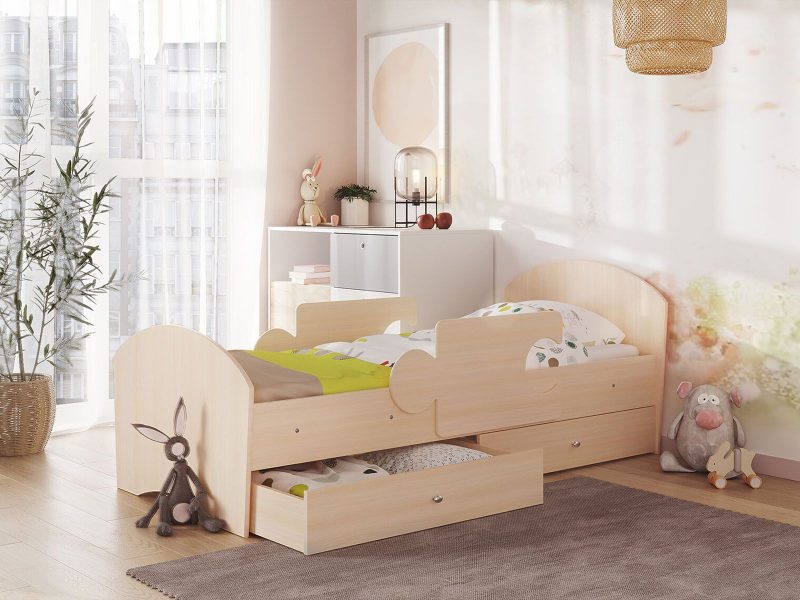 Наличие двух выдвижных ящиков позволит разместить постельное белье, вещи, игрушки и все необходимое (дополнительная опция).