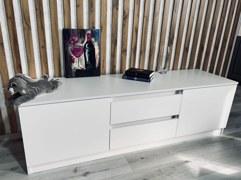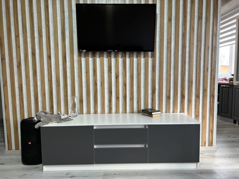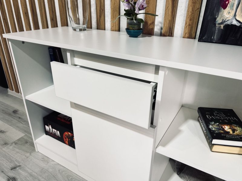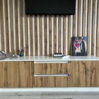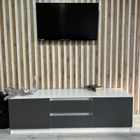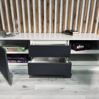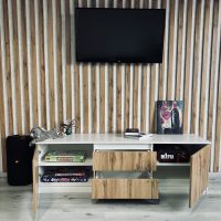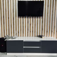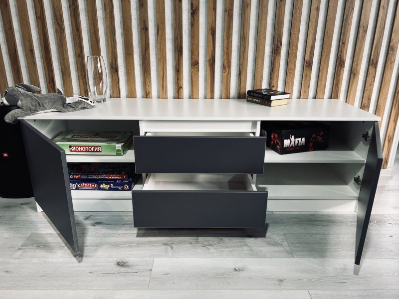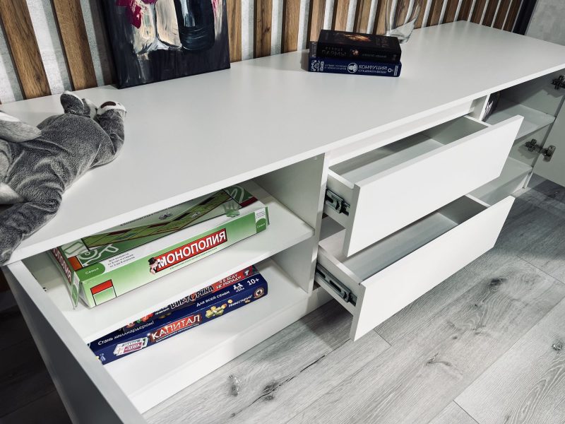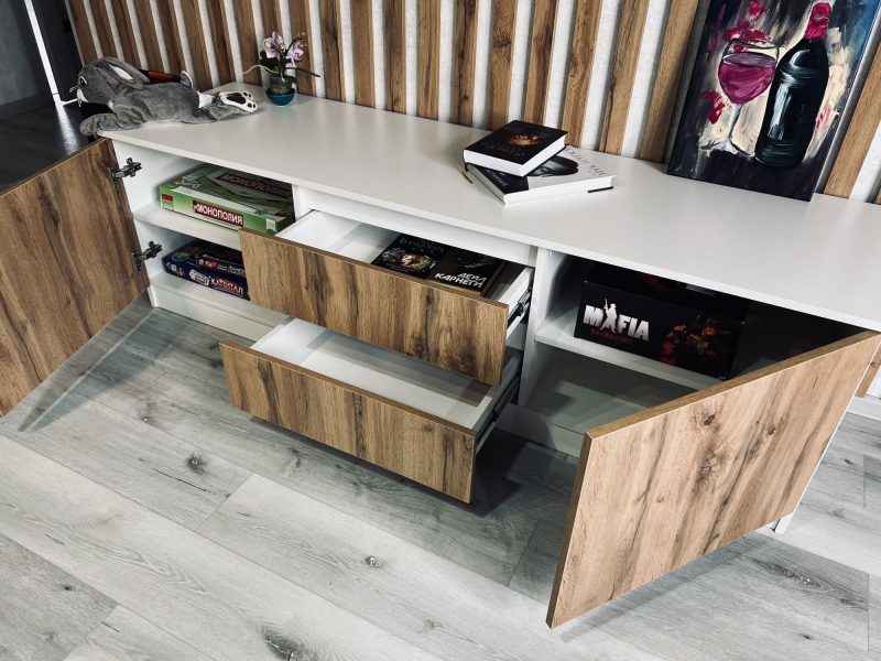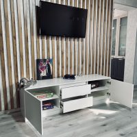 Тумба под ТВ большая украсит интерьер и станет гармоничным дополнением Вашей комнаты. Гостиная выполнена в современном стиле. Каждый элемент является отдельным полноценным предметом интерьера.