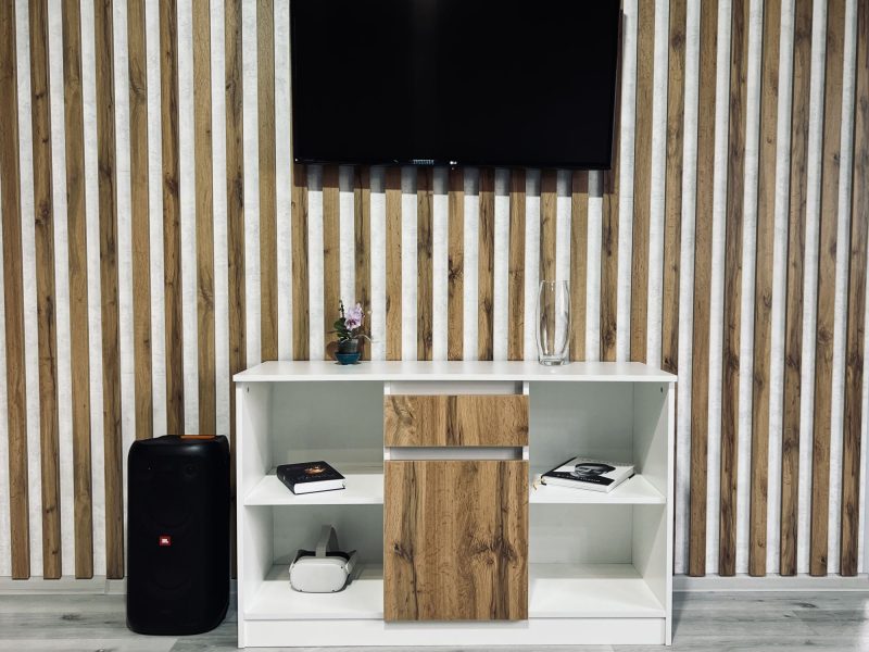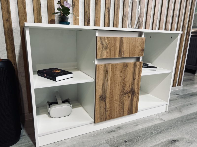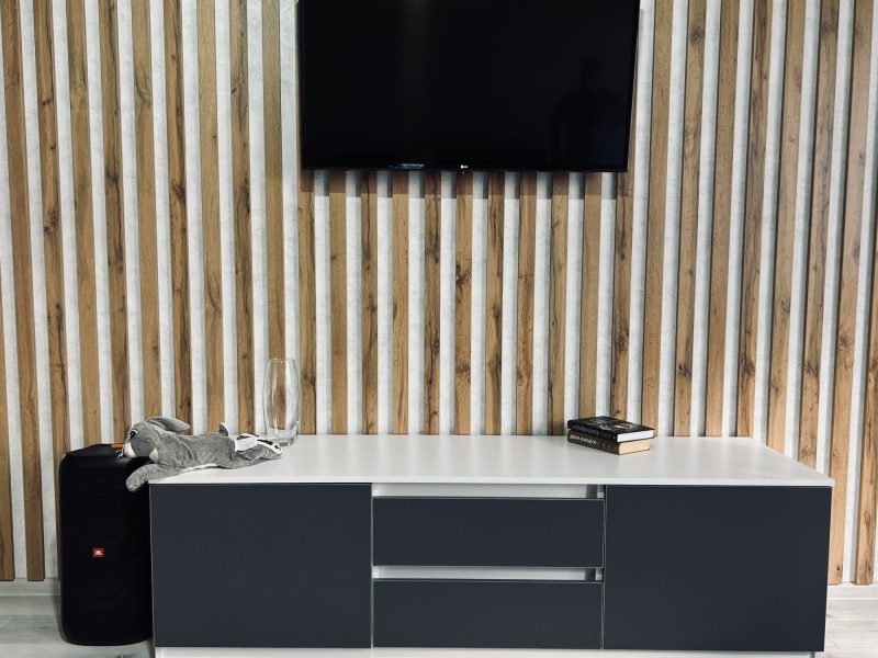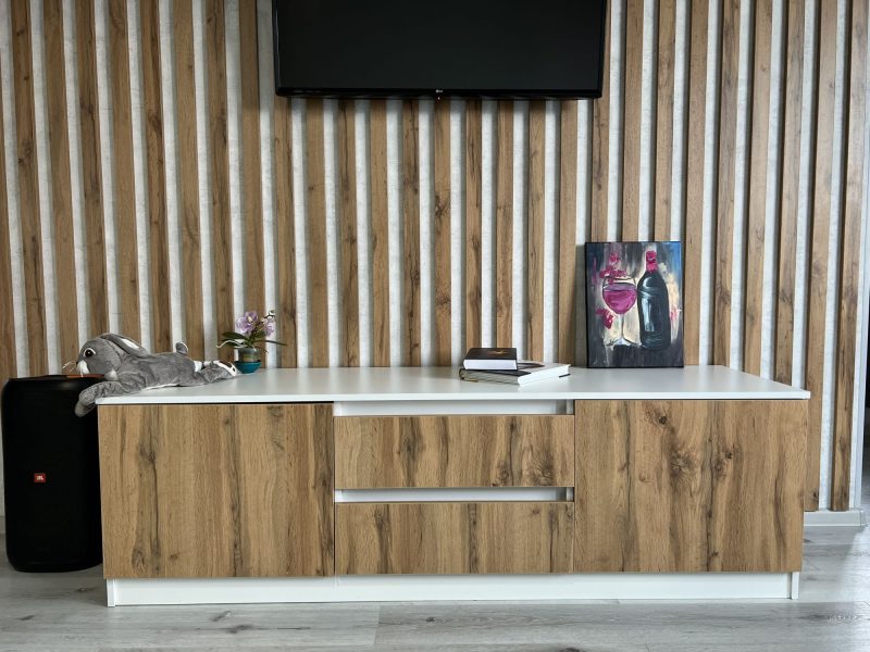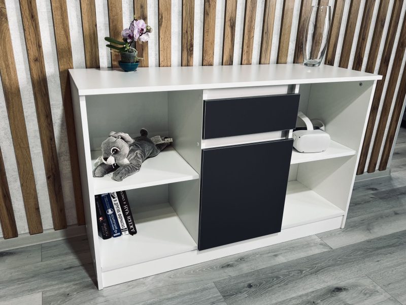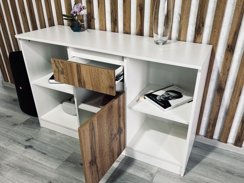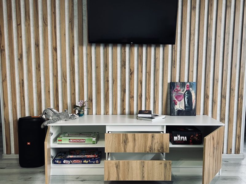 Тумба под ТВ большая украсит интерьер и станет гармоничным дополнением Вашей комнаты. Гостиная выполнена в современном стиле. Каждый элемент является отдельным полноценным предметом интерьера.