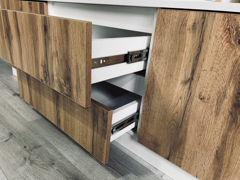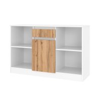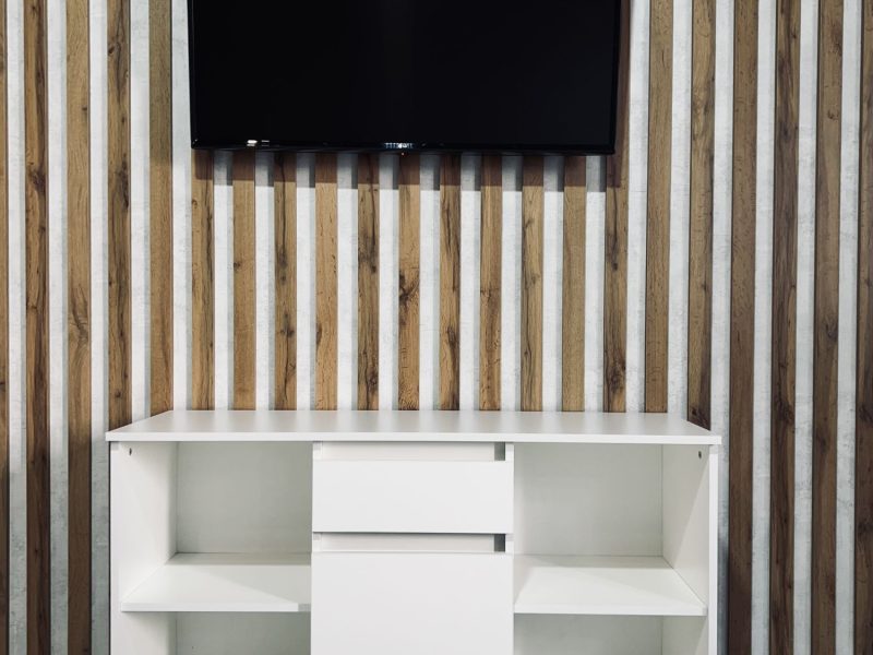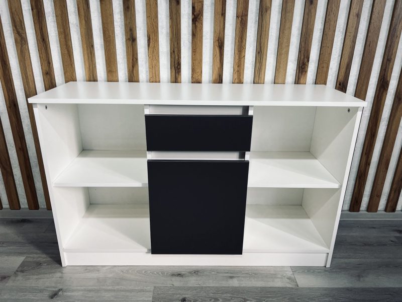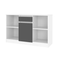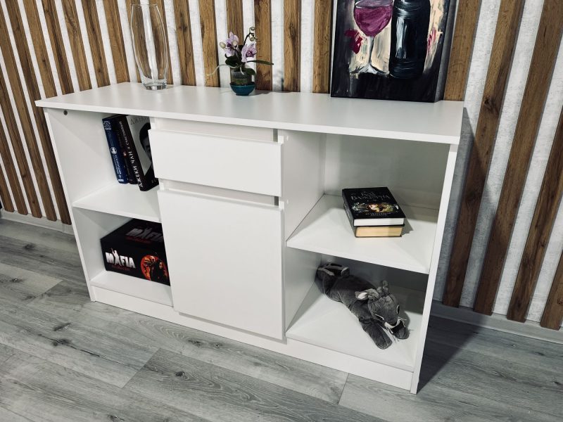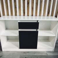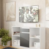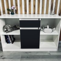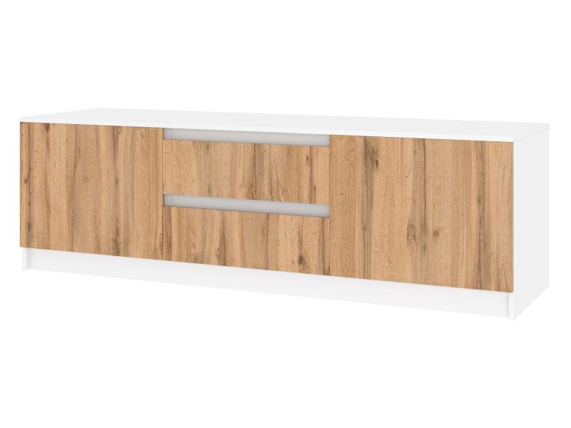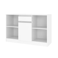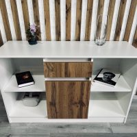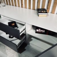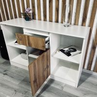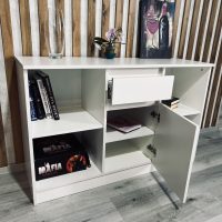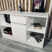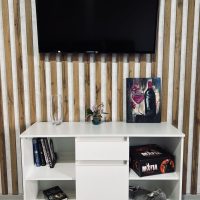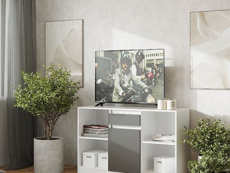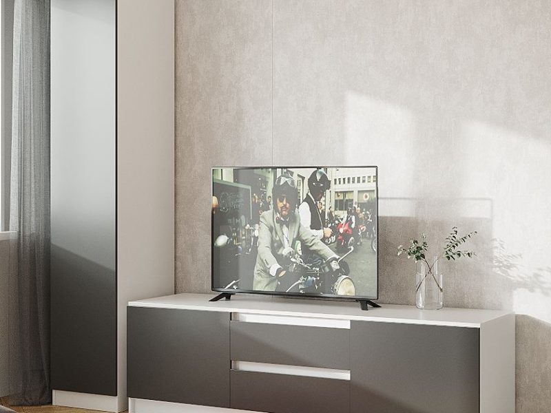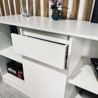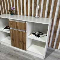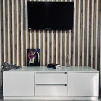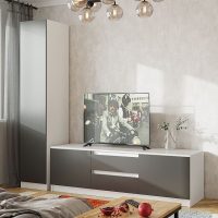 Тумба под ТВ малая может выступать как отдельный функциональный элемент, так и быть центром компоновки. Вмещает телевизор с диагональю до 40 дюймов. Две боковые ниши — функциональное место для хранения. Благодаря своим компактным размерам гостиная не будет выглядеть загроможденной, а гладкие фасады и строгие линии создадут современный и стильный интерьер.