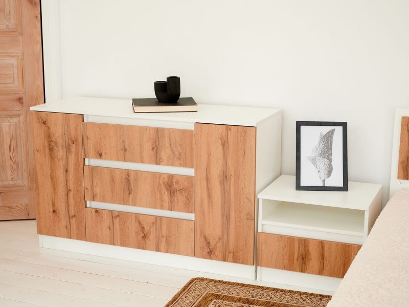 Для маленькой гостиной или спальни отлично подойдет высокий и узкий комод. Гладкие фасады ящиков делают его по-настоящему особенным.